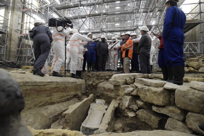 Vários túmulos e um sarcófago de chumbo : as entranhas da catedral de Notre-Dame de Paris, em plena reconstrução, revelaram importantes vestígios arqueológicos que podem datar do século XIV.