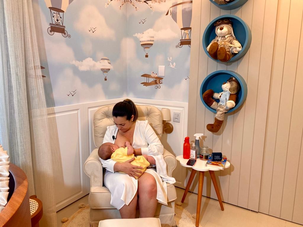 “Resolvi conciliar a agenda de gestão com a agenda de mãe. Os secretários se reuniram, foi um presente super lindo, compraram berço, compraram cadeira para amamentar. Tentamos humanizar o espaço. Compramos papel de parede, colocamos os bichinhos dele no lugar e a sala da chefe de gabinete deu espaço ao anexo do Vittorio”.