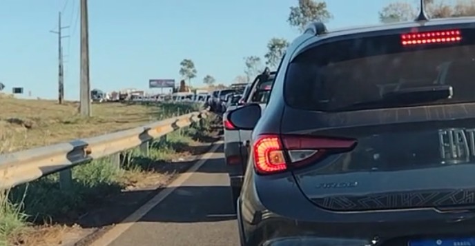 O congestionamento é no sentido sul-norte da rodovia. Um vídeo feito no local mostra os carros em fileira.
