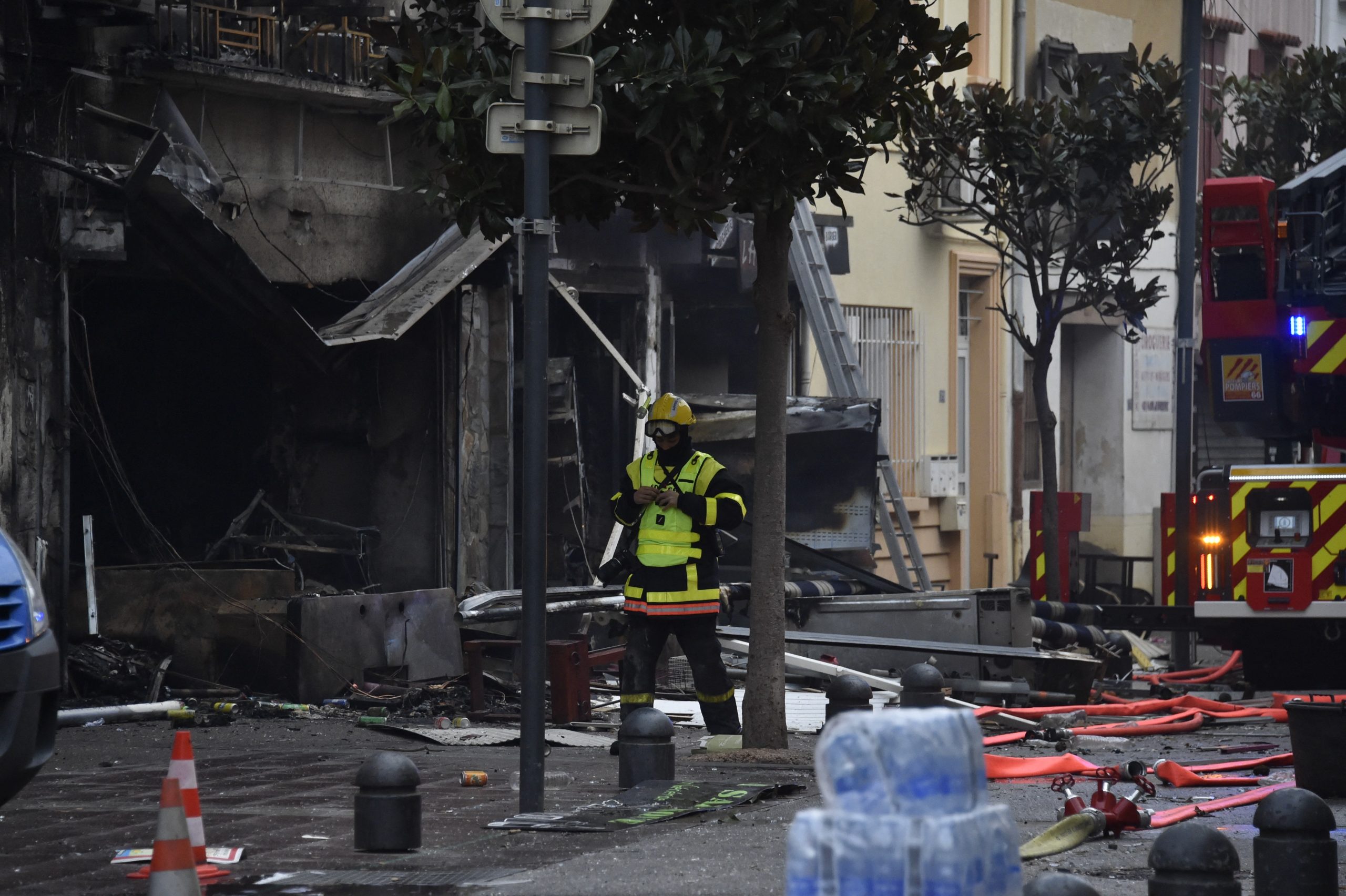 Chamas começaram em um mercado local e se propagaram para dois edifícios na principal rua da comuna. Incêndio na comuna de Saint-Laurent-de-la-Salanque, ao sul da França;