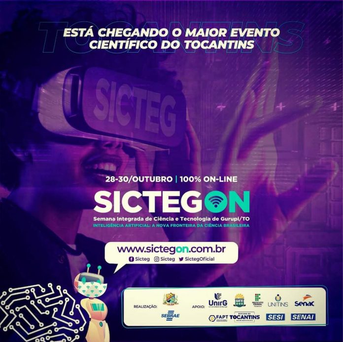 Com o tema “Inteligência Artificial: A Nova Fronteira da Ciência Brasileira”, a 6ª Semana Integrada de Ciência e Tecnologia de Gurupi (SICTEG) será realizada entre os dias 28 e 30 de outubro de 2020 no Campus virtual da Universidade de Gurupi- UnirG. Considerado o maior evento de inovação científica do Tocantins, a SictegOn este ano será 100% online, devido aos cuidados de prevenção a Covid-19. Inscrições já estão abertas.