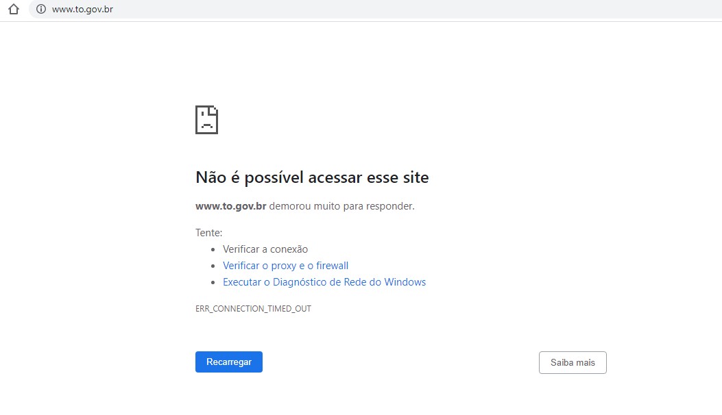 Sites importantes para o tocantinense, como o do Detran, Naturatins, Procon e Polícia Militar estão indisponíveis.