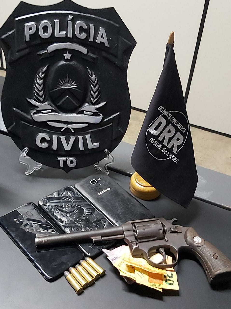 Já dentro do imóvel, os policiais civis localizaram o homem de 21 anos e fizeram a detenção do mesmo, uma vez que havia mandado de prisão em aberto contra ele. Após buscas realizadas no local, os policiais civis encontraram em poder do homem vários objetos, possivelmente de origem ilícita, bem como uma arma de fogo, tipo revolver, calibre 38, com cinco munições intactas, e que, muito provavelmente estaria sendo utilizado pelo homem preso na prática de roubos.