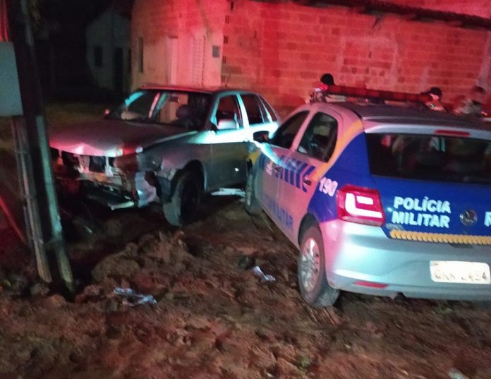 Uma viatura que participava da perseguição também perdeu o controle e atingiu uma cerca, mas não houve feridos.