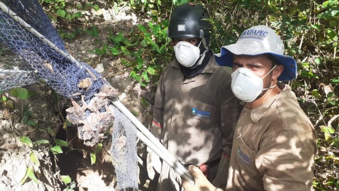 Ações seguem até 27 de abril nas cidades de Jaú do Tocantins, Palmeirópolis e São Salvador. Além do monitoramento e cadastro de abrigos de morcegos, as equipes fazem trabalho de controle populacional. Captura de morcegos durante ação da Adapec