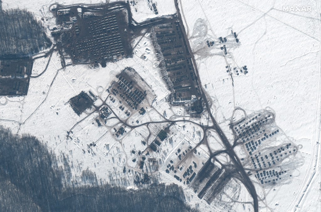 Apesar do balé diplomático dos últimos dias e do início da retirada das tropas russas da fronteira com a Ucrânia, a comunidade internacional ainda teme um conflito na região. Imagem de satélite divulgada pela Maxar Technologies mostra uma visão geral das tropas e equipamentos na área de treinamento de Kursk, na Rússia, em 14 de fevereiro de 2022.