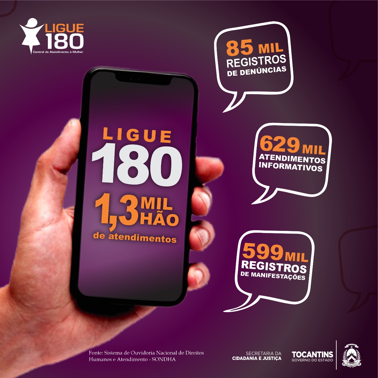 O Balanço Anual da Central de Atendimento à Mulher – Ligue 180, referente ao ano de 2019, mostra que o Tocantins ficou em 12º lugar quanto ao número de atendimentos registrados pelo canal, com 32,34 ligações por 100 mil habitantes, estando à frente de estados como o Pará (26,59), Mato Grosso (30,97) e Ceará (20,46) e com menos ligações do que o Goiás (46,86), Maranhão (34,19) e Bahia (35,7). Essas ligações incluem denúncias, pedido de informações sobre direitos das mulheres, orientações sobre as ações e campanhas e serviços de proteção de direitos das mulheres, sendo um canal seguro e confiável para a mulher, funcionando todos os dias da semana, 24h por dia, com ligação é gratuita.