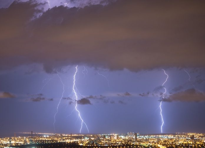 Em todo ano de 2020 mais de 2,6 milhões descargas atmosféricas caíram no estado. Raios iluminam o céu de Palmas