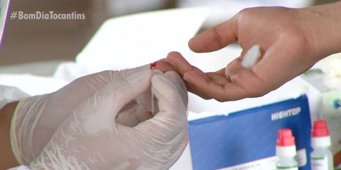 Desde o início da pandemia o estado soma 302.826 diagnósticos e 4.144 óbitos. Teste da Covid sendo realizado em Palmas