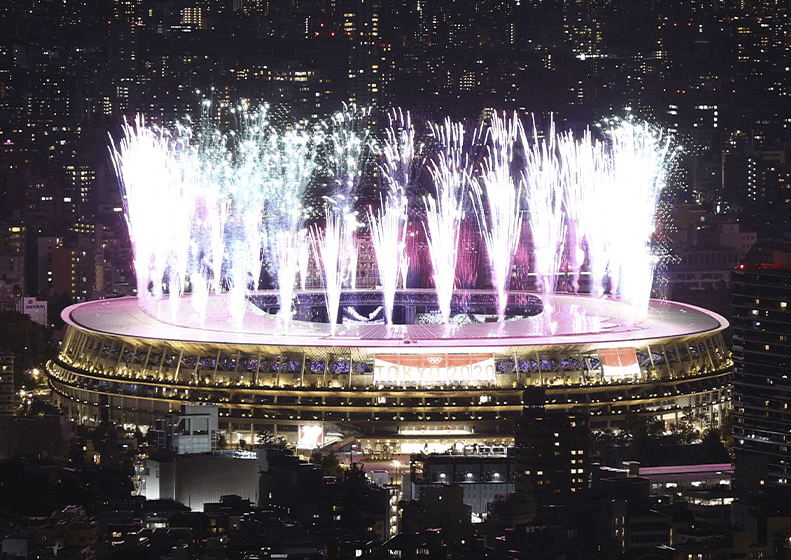 Arquibancada – Por causa da pandemia de Covid-19, que adiou os Jogos Olímpicos de Tóquio para 2021, a cerimônia de abertura foi realizada sem público