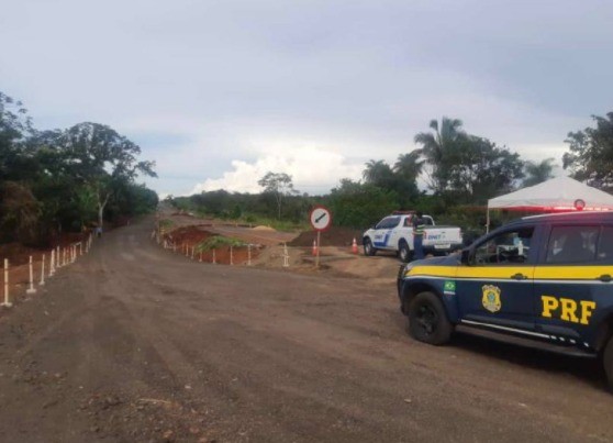 O desvio lateral tem cerca de 300 metros de extensão. A informação é de que apenas um veículo poderá passar por vez e a travessia será controlada no sistema pare e siga.