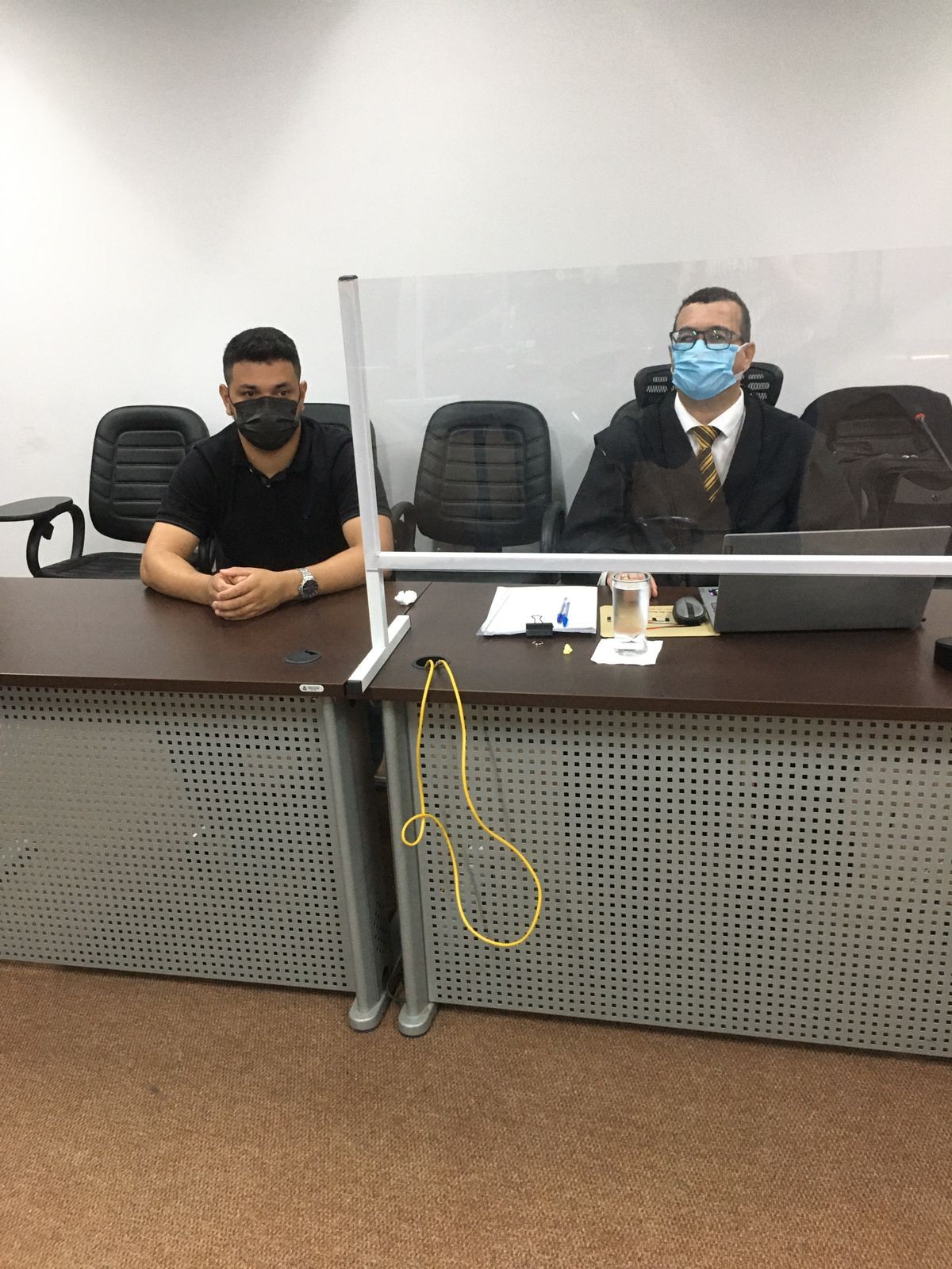 Juiz aplicou pena de seis anos de prisão em regime semiaberto. Advogado de defesa afirmou que vai recorrer da decisão. Karlos Kaique (esq.) e o advogado de defesa durante julgamento