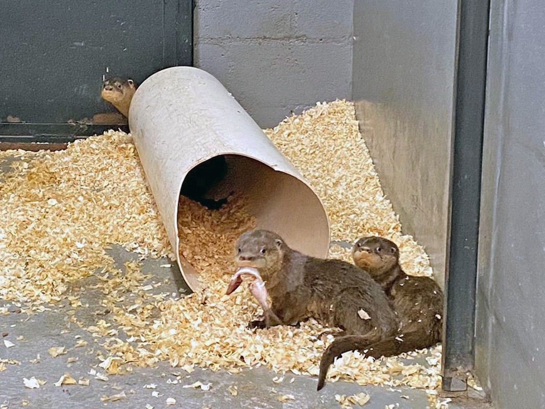 Os gêmeos bebês lontra, um macho e uma fêmea, nasceram no último dia 1º de junho. Eles são filhos das lontras Eduardo e Mônica, uma homenagem a música do grupo Legião Urbana. As lontrinhas (na frente) e a mãe, Mônica (atrás)