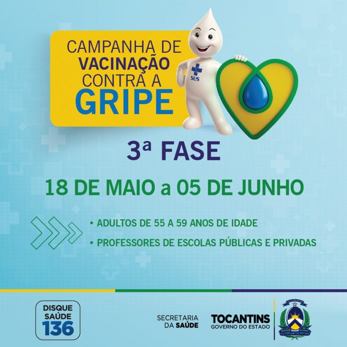 A terceira e última fase será realizada entre 18 de maio e 5 de junho . A vacina protege contra os três tipos de vírus Influenza mais comuns no Brasil: A(H1N1),A(H3N2) e Influenza B.
