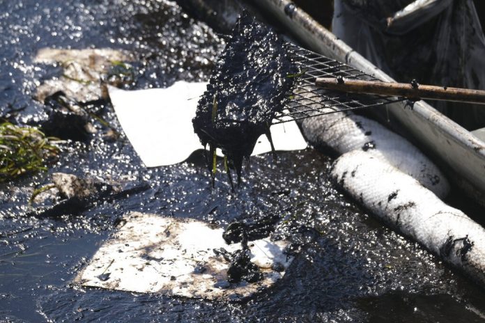 Segundo as autoridades americanas, 3 mil barris de petróleo – ou 474 mil litros – cobrem uma área de 33 metros quadrados do Oceano Pacífico.