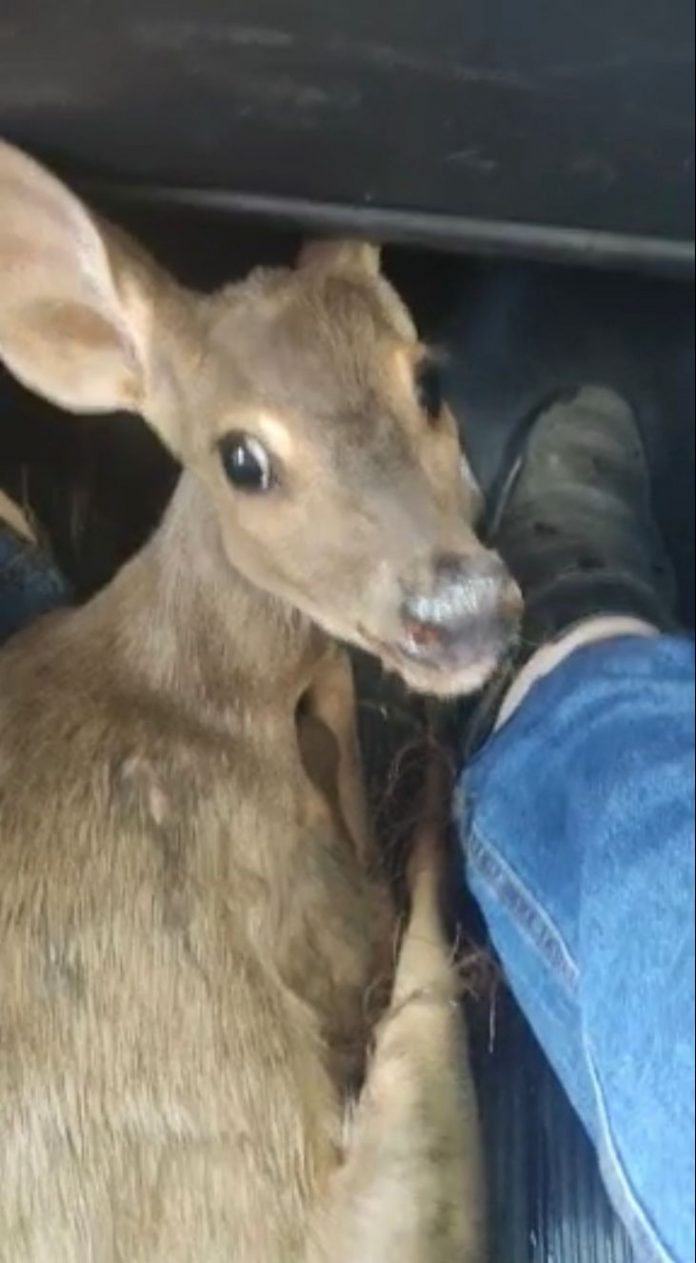 As pessoas que encontraram o animal tiveram que levá-lo até a Polícia Militar (PM) , em Palmas. Animal silvestre é um veado catingueiro