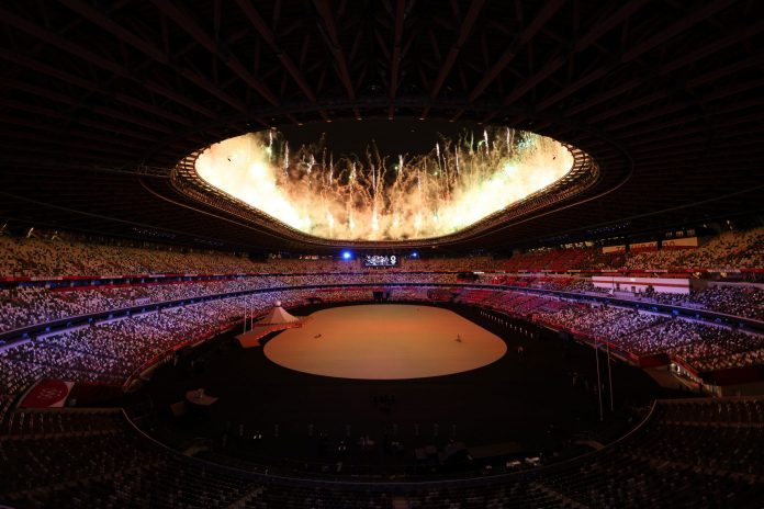 Os Jogos Olímpicos de Tóquio começam oficialmente nesta sexta-feira (23), depois de terem sido adiados por um ano em razão da pandemia da Covid-19. Vista interna do estádio Olímpico durante a cerimônia de abertura dos Jogos, em 21 de julho de 2021