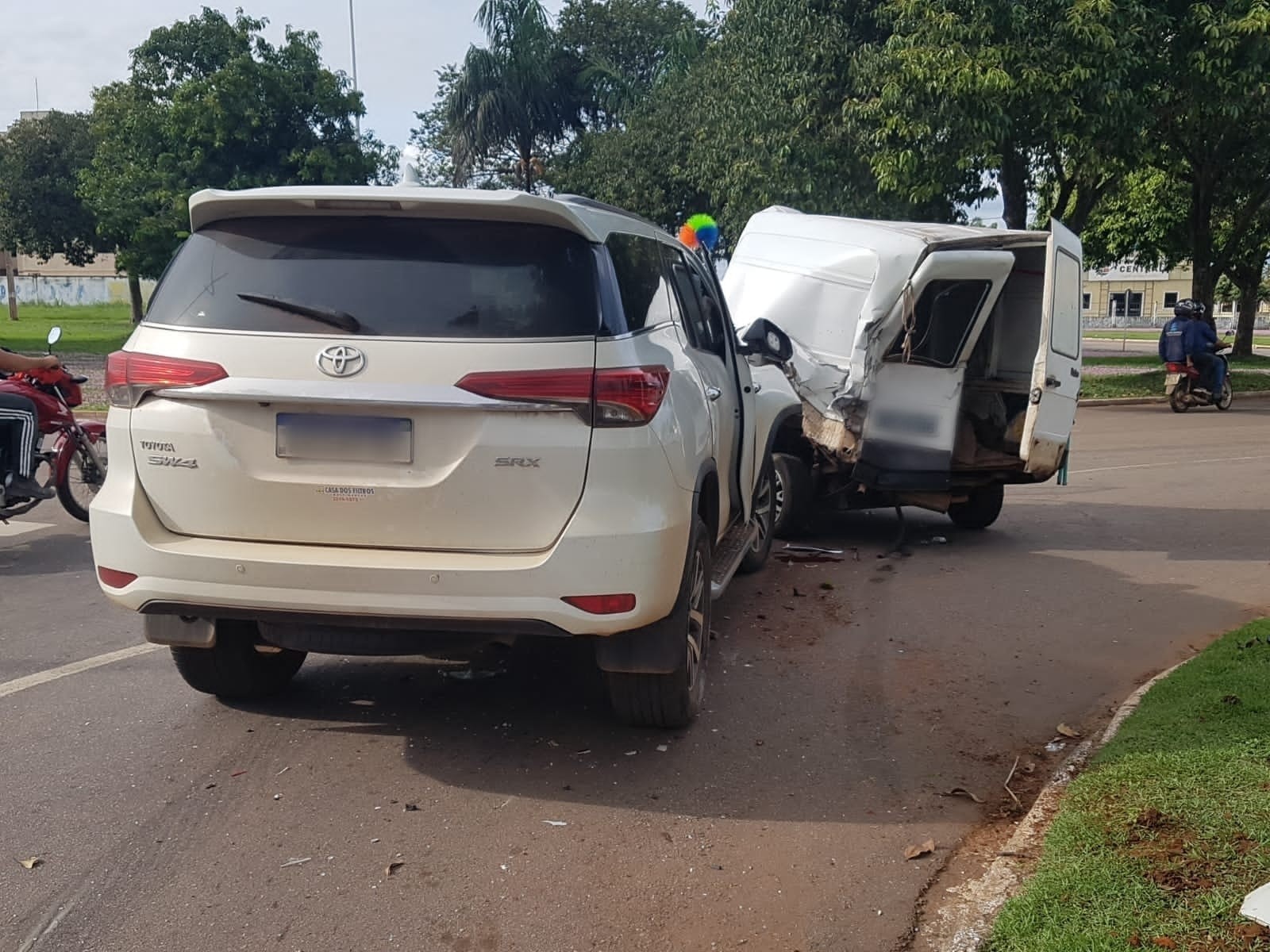Um vendedor teve o carro atingido por outro veículo enquanto retirava jogos de panelas do automóvel em Palmas. O carro usado pelo trabalhador ficou destruído depois do impacto e de ser arrastado por alguns metros. Segundo a Agência de Trânsito, Transporte e Mobilidade (ATTM), apesar do susto e do prejuízo, ninguém se feriu.