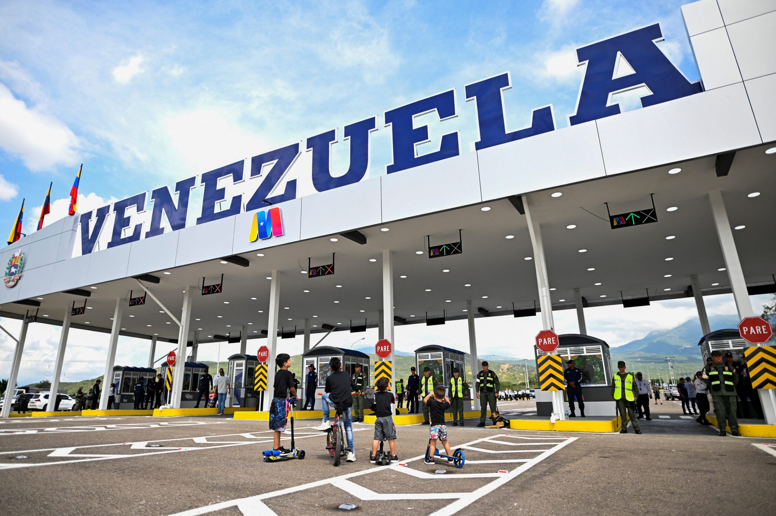 As duas nações reataram relações após a chegada ao poder do esquerdista Gustavo Petro, que prometeu “normalizar” a fronteira afetada por grupos armados e pelo contrabando. Crianças brincam com seus skates durante a reabertura da ponte binacional Coronel Atanasio Girardot em Ureña, na Venezuela, em 1º de janeiro de 2023