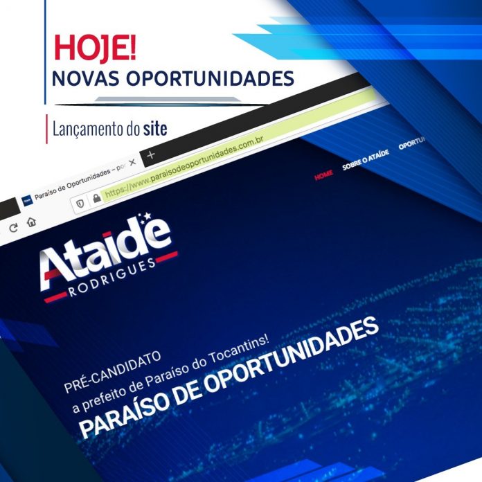 O Vereador Ataíde Rodrigues lançou nesta segunda-feira, dia 15, seu site da pré-campanha a Prefeito de Paraíso do Tocantins, através do endereço www.paraisodeoportunidades.com.br. Segundo o pré candidato, o slogan “Paraíso de Oportunidades” refere-se à sua plataforma e projetos políticos para a cidade, pensando nos próximos 10 anos em 7 eixos, apresentando novas oportunidades para a Saúde, Educação, Gestão Municipal, Turismo e Lazer, Desenvolvimento Econômico, Infraestrutura e Social.