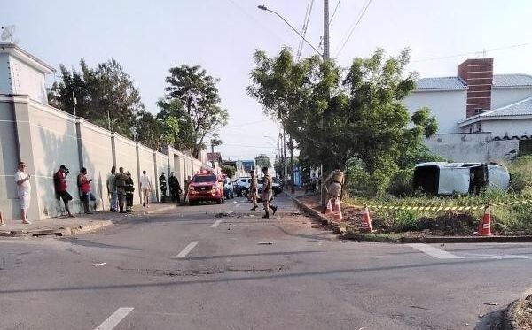Impacto foi tanto que caminhonete capotou