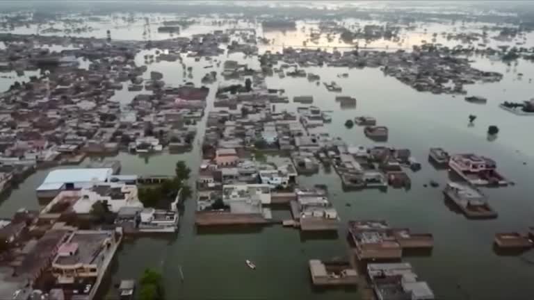 Imagem de drone mostra enchente em Punjab, no Paquistão