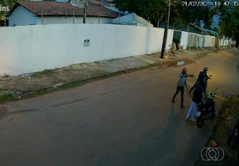 Nas imagens, é possível ver que o homem, de 33, está encostado em sua moto, conversando com as outras duas pessoas na porta de uma residência.