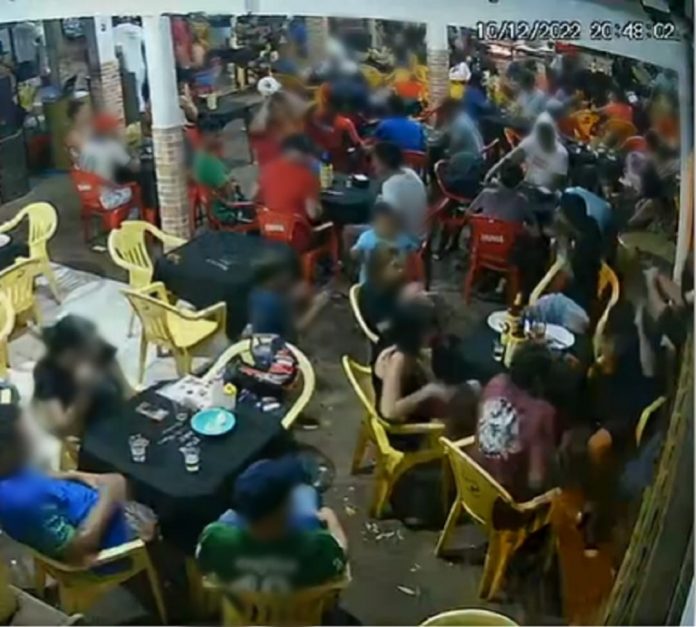 O estabelecimento estava lotado no momento do crime, inclusive com duas crianças andando perto do local dos disparos. Em determinado momento do vídeo o criminoso aparece com a arma na mão e faz disparos, praticamente à queima-roupa, contra dois homens que estavam sentados em uma mesa com outras pessoas.