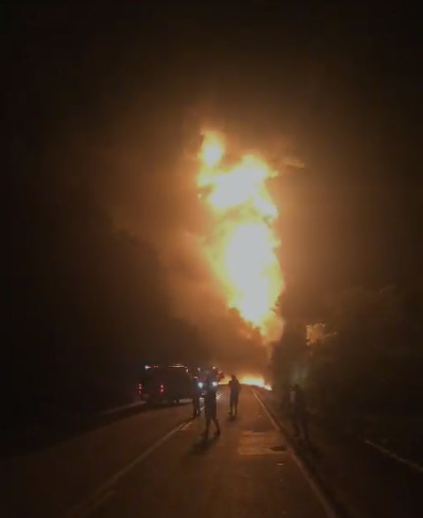 Coluna de fogo se formou após explosão de caminhão-tanque