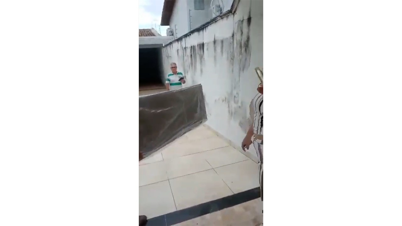 O vídeo do flagrante mostra Sinvaldo sendo questionado enquanto móveis eram retirados do veículo para dentro da casa dele. (Assista acima)