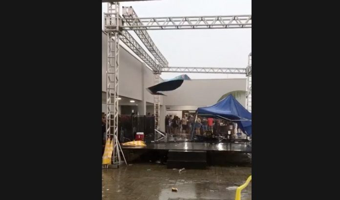 Tempestade acompanhada de ventos fortes foi registrada neste domingo (24), durante show de reinauguração da praia. Chuva forte arrasta tendas durante inauguração da praia de Lajeado