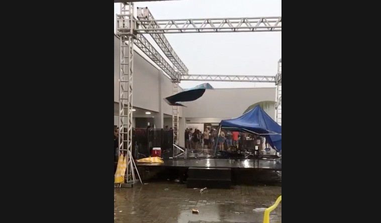Nas imagens, é possível ver que o show é finalizado e as pessoas correm para se abrigar debaixo de tendas. Em outro vídeo, o tocantinense mostra a árvore caída em cima de um carro.