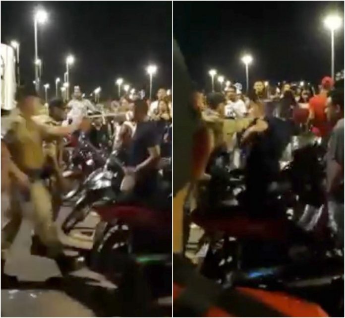 PM é filmado arrastando mulher pelo cabelo e dando socos, chutes e coronhada em homem durante festa