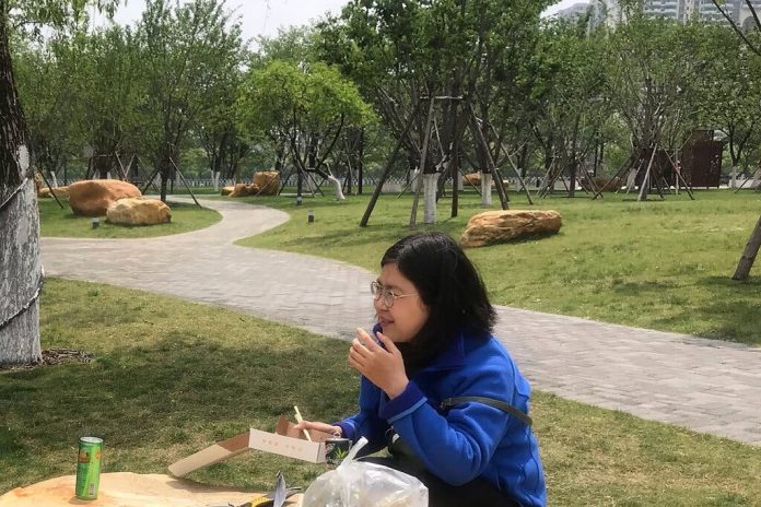 Jornalista Zhang Zhan em Wuhan, antes de ser presa pela polícia chinesa, em foto de 2020
