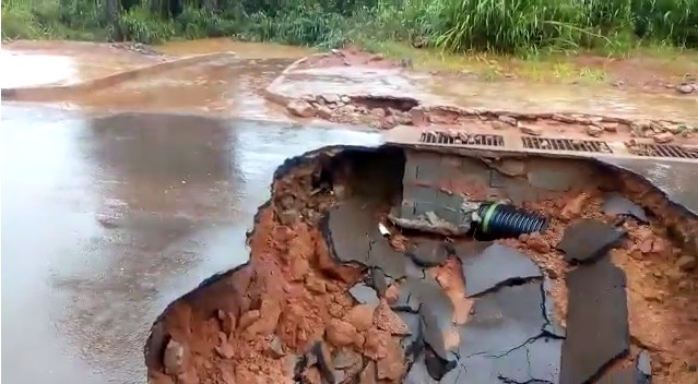 “Neste período chuvoso o acúmulo de água é grande e acredito que devido à quantidade de água que vem, não é suficiente para passar por baixo nessa canalização da água. Aí o asfalto não aguenta”, comentou o morador Raimundo Reis.