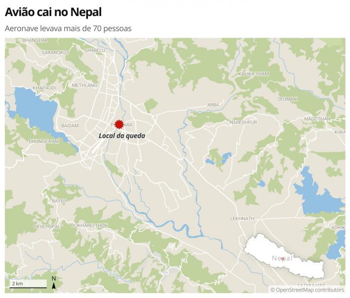 Avião com 72 pessoas cai no Nepal e deixa mortos