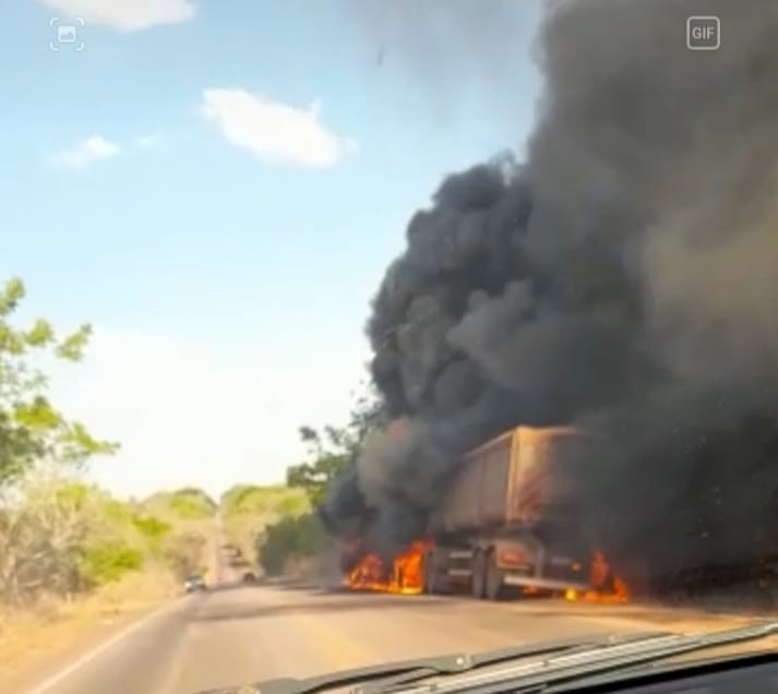Um caminhão pegou fogo, neste domingo (14), enquanto trafegava pela TO-080, no trecho entre Paraíso do Tocantins e Monte Santo. Com o incêndio, uma nuvem de fumaça gigante se espalhou pela rodovia.