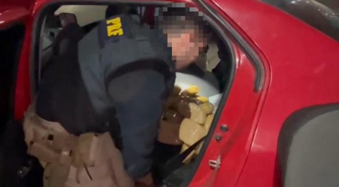 Mais de 50 kg de haxixe foram apreendidos pela Polícia Rodoviária Federal (PRF) dentro de um carro que era transportado por um caminhão-cegonha. O flagrante aconteceu no trecho da BR-153 em Guaraí, na região centro-norte do estado, na noite desta quinta-feira (2).