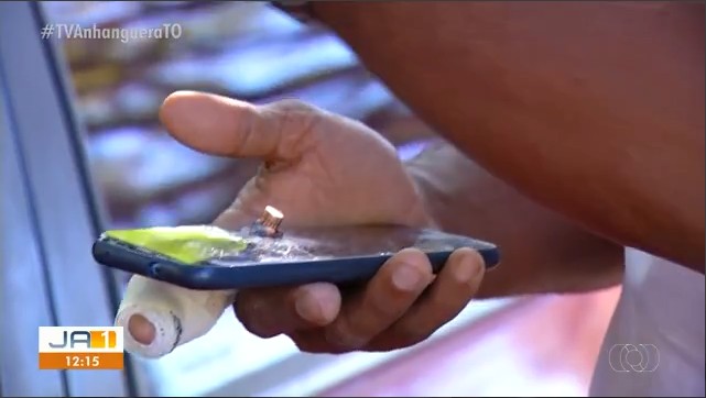Um motorista de aplicativo de Palmas diz que nasceu de novo após ser vítima de uma bala perdida que ficou alojada no celular. O homem estava com o celular nas mãos e ainda foi atingido de raspão no dedo.