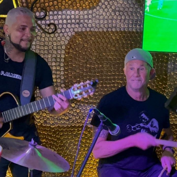 Rafael Soares e Chad Smith tocam juntos em bar do Rio