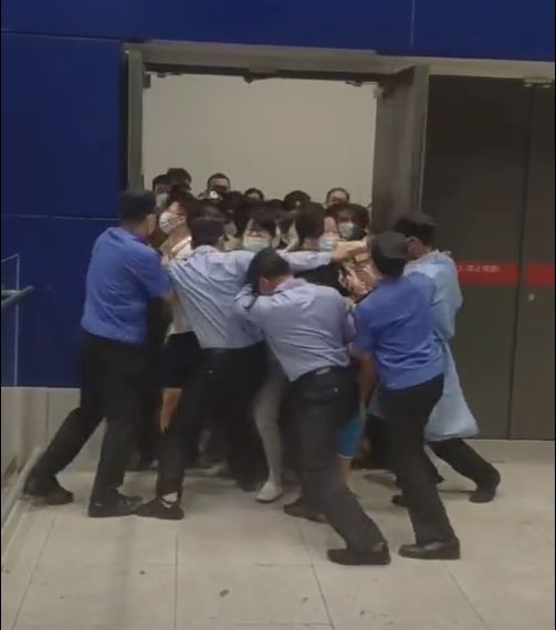 Vídeos que circulam nas redes sociais chinesas mostram clientes empurrando seguranças em pânico enquanto o sistema de som anunciava que o shopping estava sendo fechado devido ao rastreamento de contato do COVID. (Veja acima)