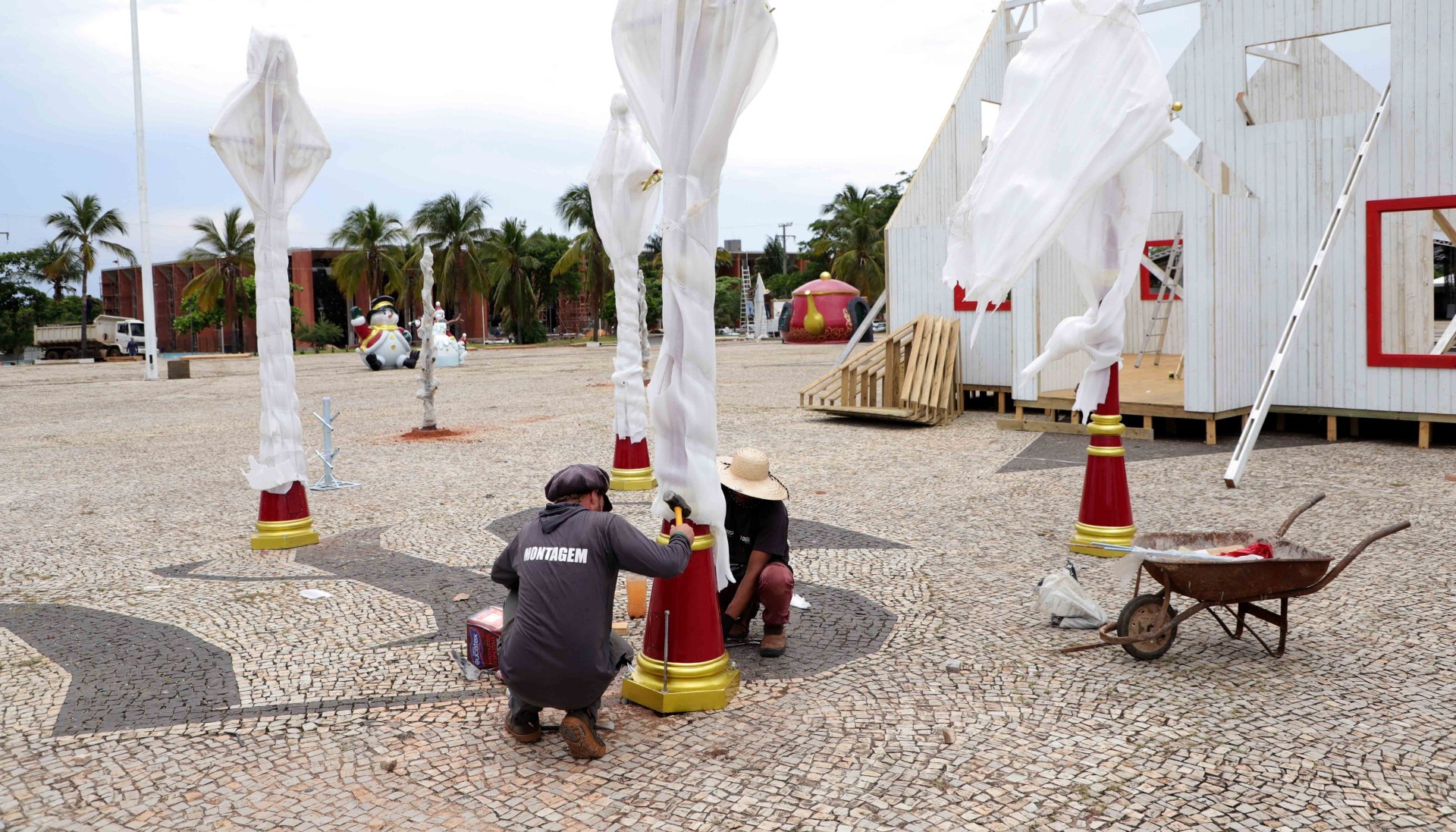 De acordo com o Governo, programação começa no dia 12 de dezembro. Montagem da decoração do ‘Natal de Luz’ já começou. Decoração de natal na Praça dos Girassóis