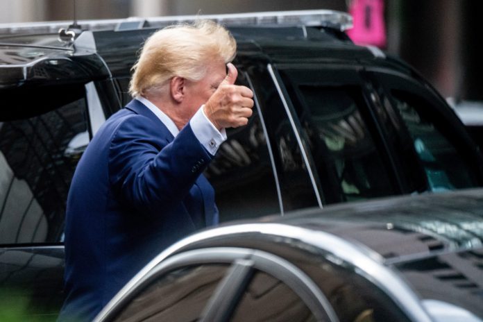 Ex-presidente americano, Donald Trump, enquanto deixava a Trump Tower em Nova York, nos EUA