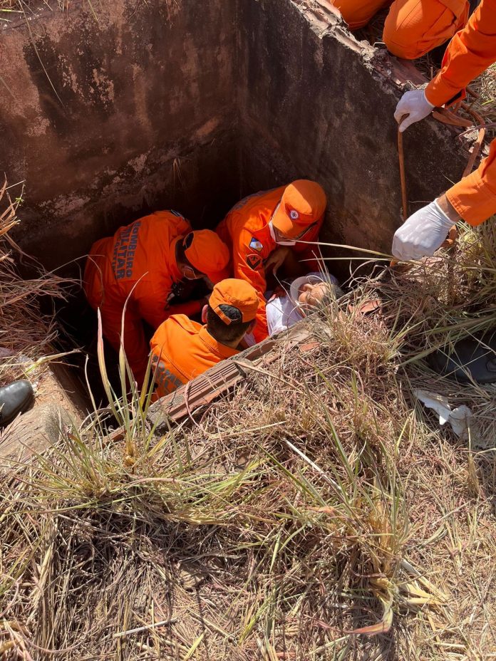 Acidente aconteceu na tarde desta terça-feira (15), em Palmas. Bombeiros tiveram que retirar as vítimas do buraco. Bombeiros tiveram que içar vítimas