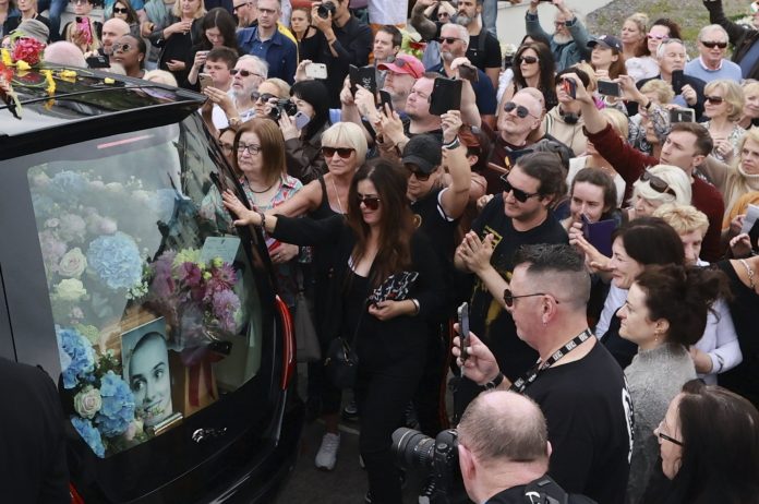Os fãs se reuniram à beira-mar em Bray, ao sul de Dublin, e aplaudiram quando o caixão de O’Connor passou em um carro fúnebre. À frente, a van da Volkswagen foi enfeitada com uma bandeira do arco-íris e tocava “Natural Mystic” de Bob Marley em alto-falantes presos ao teto.