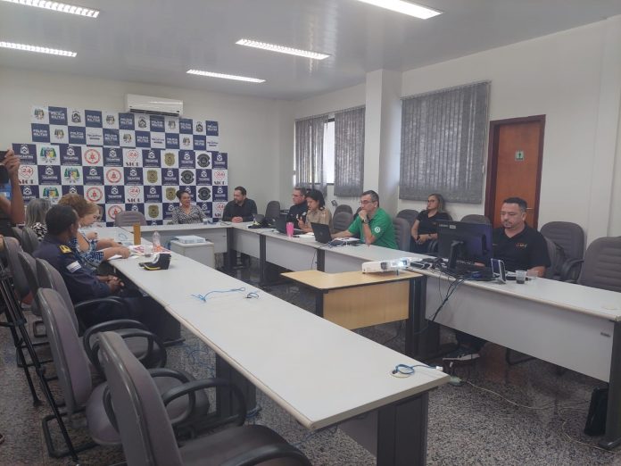 Coletiva de imprensa aconteceu neste domingo (5), no Gabinete de Monitoramento da Operação Integrada Enem 2023, no QCG. Coletiva de imprensa foi realizada no Quartel do Comando Geral da PM, em Palmas