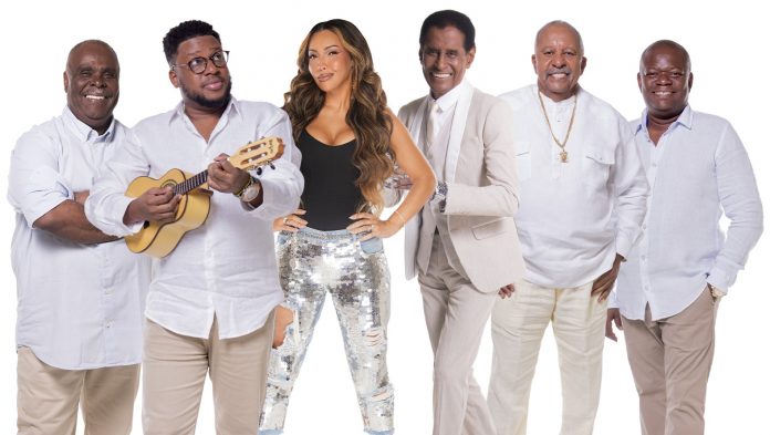 Fundo de Quintal e Karinah, cantora com quem o grupo carioca gravou o single ‘Conselho’, programado para 26 de agosto