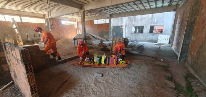 Acidente aconteceu em Gurupi. Vítima teve ferimentos no rosto e foi levado para ao Hospital Regional. Bombeiros resgataram o trabalhador que se feriu na obra