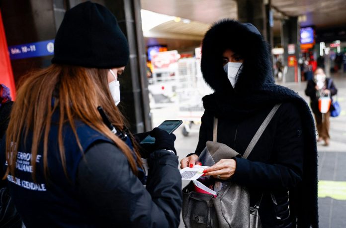 Pessoas também não poderão entrar em restaurantes a partir desta segunda. Na semana passada, governo tornou obrigatória a imunização para os maiores de 50 anos. Pessoa apresenta “passaporte” da Covid-19 antes de embarcar em trem na principal estação ferroviária de Roma, na Itália, em 10 de janeiro de 2022