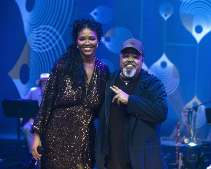 Luedji Luna e Jorge Aragão posam na gravação do ‘Sambabook Beth Carvalho’ no Rio de Janeiro